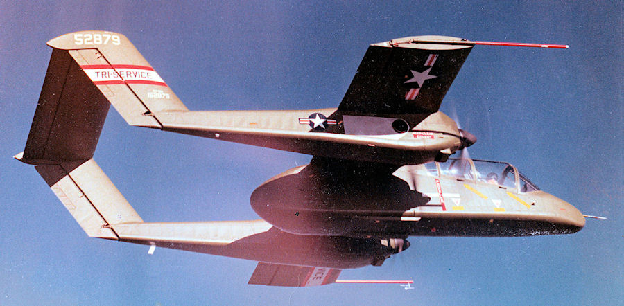 152883 (MSN 300-5) Not shown in 1968 & 1971 Naval Aircraft History Card Monthly Report Summary. Prototype twin-engined, twin boom, battlefield observation aircraft for USMC. Produced by North American Columbus, Ohio (NH)
