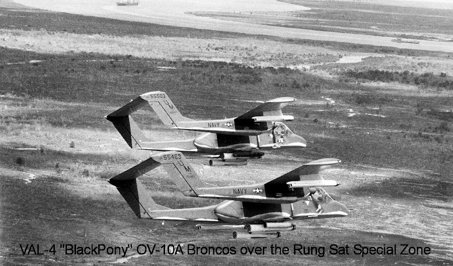 In 1968, the Navy decided to use OV-10A Broncos to strengthen and improve the Navy SEAL and Riverine force operations close-in air support for Task Force 116's 'Operation Gamewarden' in the Mekong Delta of Vietnam. With Broncos borrowed from the USMC the Navy established pilot and maintenance training at VS-41 at Naval Air Station North Island near San Diego, California. Light Attack Squadron Four (VAL-4) was commissioned on January 3, 1969. The Black Ponies left San Diego in March of 1969 and arrived in Vietnam in early April. The Black Pony's maintenance and headquarters were based at Naval Support Activity Binh Thuy with daily flight operations taking place out of the VNAF base a few kilometers away. Detachment 'Bravo' was established at the US Army Airfield in Vung Tau. VAL-4 operated the OV-10 in Vietnam until April 1972, at which point the aircraft returned to duty with the Marines.