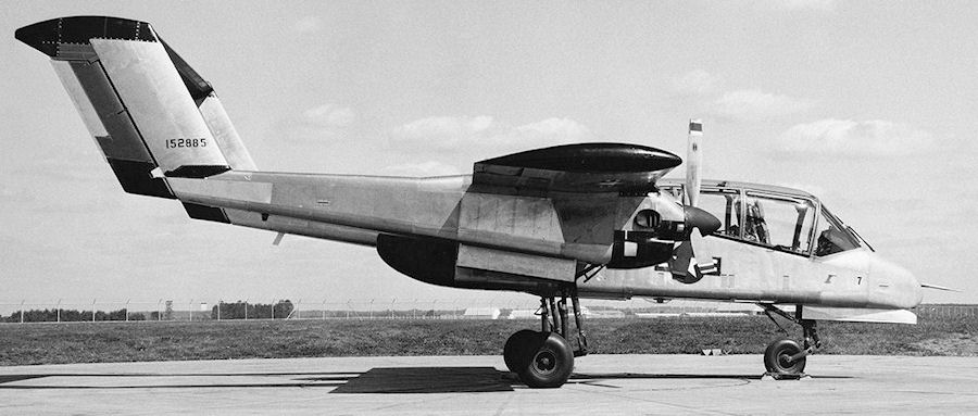 152885 (MSN 300-7) First listed with All Service Evaluationon at NAS Patuzent River, Maryland on June 18, 1967. Sent to NPRC R&T in Columbus, Ohio on November 14, 1967. Prototype twin-engined, twin boom, battlefield observation aircraft built for the USMC.